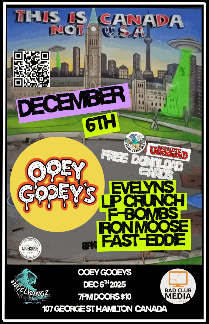 DEC 6 - EVELYNS, LIP CRUNCH, F-BOMBS, IRON MOOSE, FAST EDDIE at Ooey Gooey's (Hamilton)