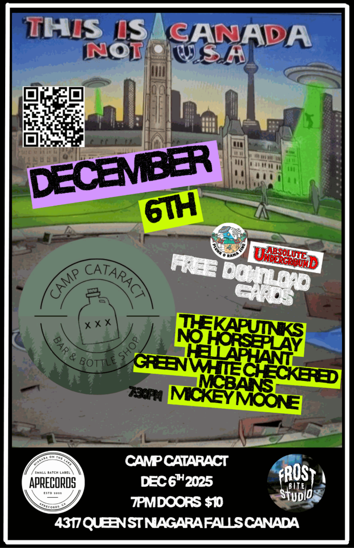 DEC 6 - THE KAPUTNIKS, NO HORSEPLAY, GREEN WHITE CHECKERED, MCBAINS, MICKEY MOONE at Camp Cataract (Niagara Falls)