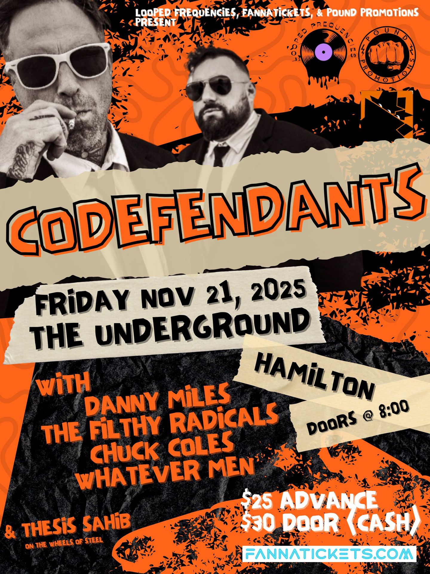 NOV 21 - CODEFENDANTS, DANNY MILES, THE FILTHY RADICALS, CHUCK COLES, THE WHATEVER MEN, at The Underground (Hamilton)